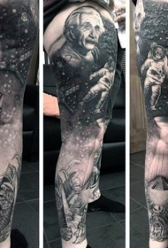 腿部爱因斯坦肖像和宇航员太空纹身图案
