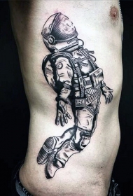 侧肋黑白巨型章鱼与骷髅纹身图案