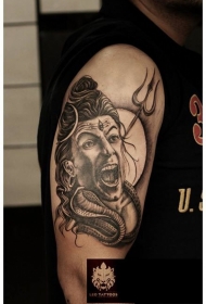 大腿时尚黑灰美丽舞者肖像纹身图案