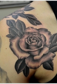 令人印象深刻的黑灰玫瑰背部纹身图案