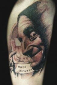 非常逼真的黑灰恐怖男性肖像纹身图案