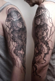 手臂黑灰个性水母纹身图案