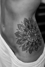 侧肋几何风格黑白梵花纹身图案