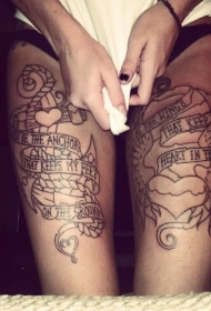 大腿几何风格黑白心脏纹身图案