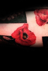 手臂彩色的花朵和白色十字架纹身图案