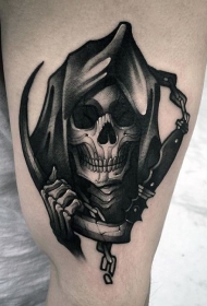 插画风格的黑白骷髅死神手臂纹身图案