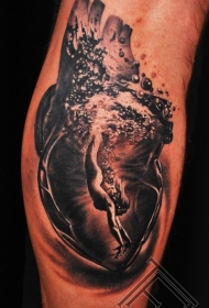 手臂黑白心脏结合跳水女性纹身图案