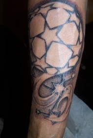 手臂黑白足球与星星纹身图案