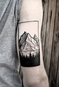 森林和山脉黑白点刺手臂纹身图案
