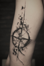 黑白泼墨大指南针手臂纹身图案