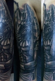 奇怪的黑白古埃及神阿努比斯手臂纹身图案