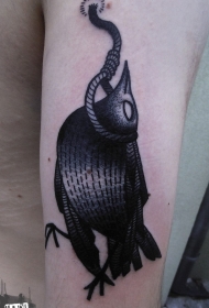 手臂上绳子和乌鸦黑白纹身图案