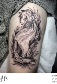 雕刻风格的黑白马手臂纹身图案
