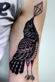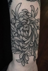 old schoo黑白火烈鸟和花朵手臂纹身图案