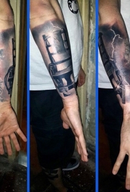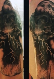 独特设计的黑白骷髅风暴和闪电手臂纹身图案