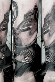 独特的组合黑白骷髅与吉他手臂纹身图案