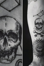 有趣的组合黑白骷髅与钥匙手臂纹身图案