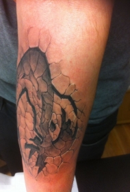 手臂大规模黑白神秘3D腐烂地面纹身图案