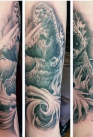 手臂黑白哥斯拉个性纹身图案