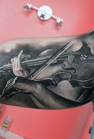 手臂写实的拉小提琴纹身图案
