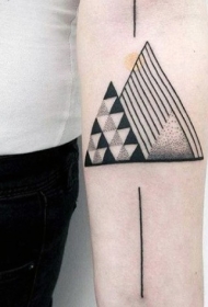 手臂几何风格点刺线条黑白纹身图案
