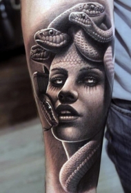 华丽精美的黑白诱人美杜莎肖像手臂纹身图案