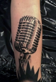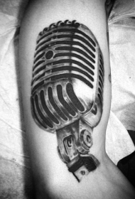 逼真的写实黑白老式麦克风手臂纹身图案
