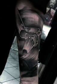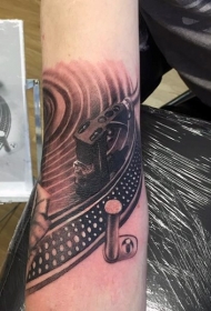 手臂有趣的黑白麦克风与音符磁带纹身图案