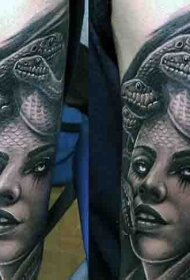手臂黑白美杜莎肖像和逼真的蛇纹身图案