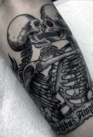 手臂惊人的old school亲吻骨骼夫妇纹身图案