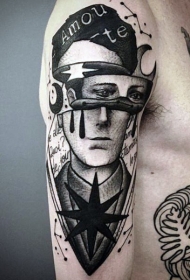 小小的黑白点刺人像和沙漏手臂纹身图案