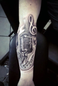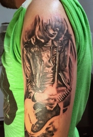 灿烂的音乐主题黑白吉他手臂纹身图案
