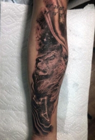 彩绘华丽的黑白狮子和星座符号手臂纹身图案