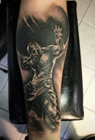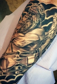 难以置信的黑色波塞冬与帆船手臂纹身图案