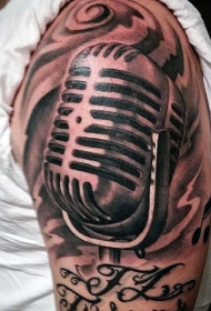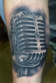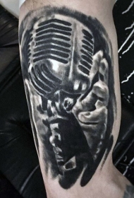 非常逼真的黑白写实麦克风手臂纹身图案