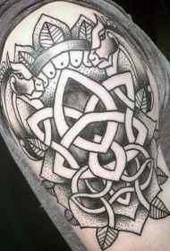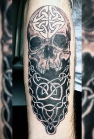 黑白神秘骷髅与凯尔特装饰手臂纹身图案