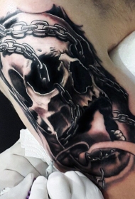 手臂令人毛骨悚然的铁链和骷髅纹身图案
