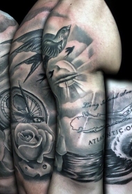 华丽彩绘黑白海上主题手臂纹身图案