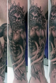 手臂精致的黑白波塞冬海神纹身图案