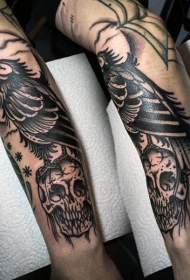 old school黑白鸟与骷髅手臂纹身图案