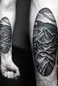 简单的黑白点刺山脉手臂纹身图案