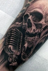 令人印象深刻的黑白麦克风和骷髅手臂纹身图案