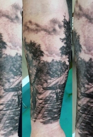 手臂有趣的黑白绳子和断头鹰纹身图案