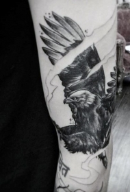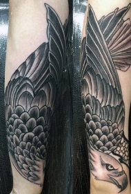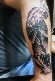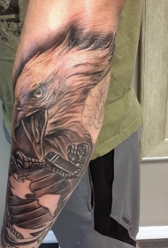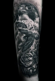 手臂惊人的黑白老鹰与玫瑰纹身图案