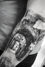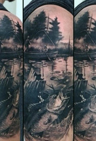 令人印象深刻的黑白上钩鱼手臂纹身图案