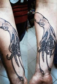 old school小臂黑白大眼睛鱿鱼纹身图案