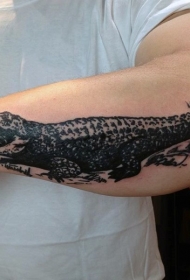手臂有趣的彩色卡通鳄鱼穿西装和茶杯纹身图案