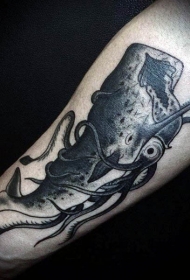 胳膊奇怪的黑白鱿鱼纹身图案