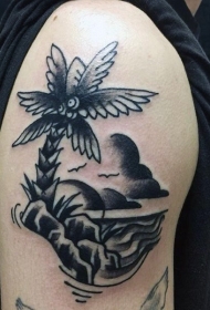 简单的old school黑白棕榈树和海岸手臂纹身图案