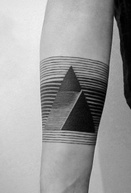 手臂上的几何黑白线条纹身图案